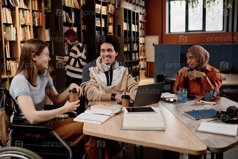 Молодые люди вместе учатся в библиотеке