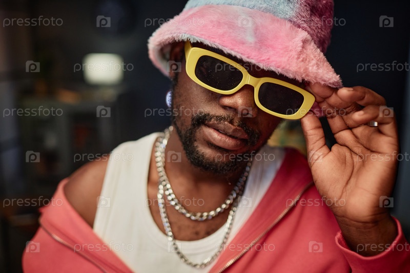 Черный мужчина в модных солнцезащитных очках