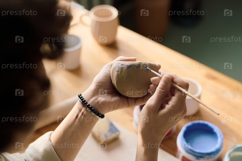 Непризнанная женщина окрашивает глиняный сосуд