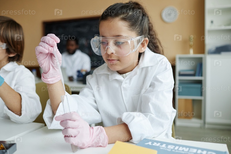 Добавление химикатов в пробирку девушки