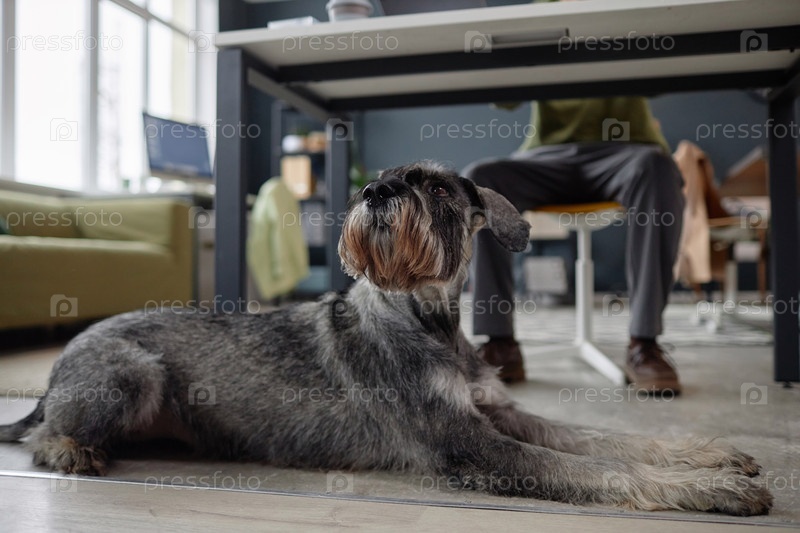 Собака лежит на полу в офисе Pet Friendly