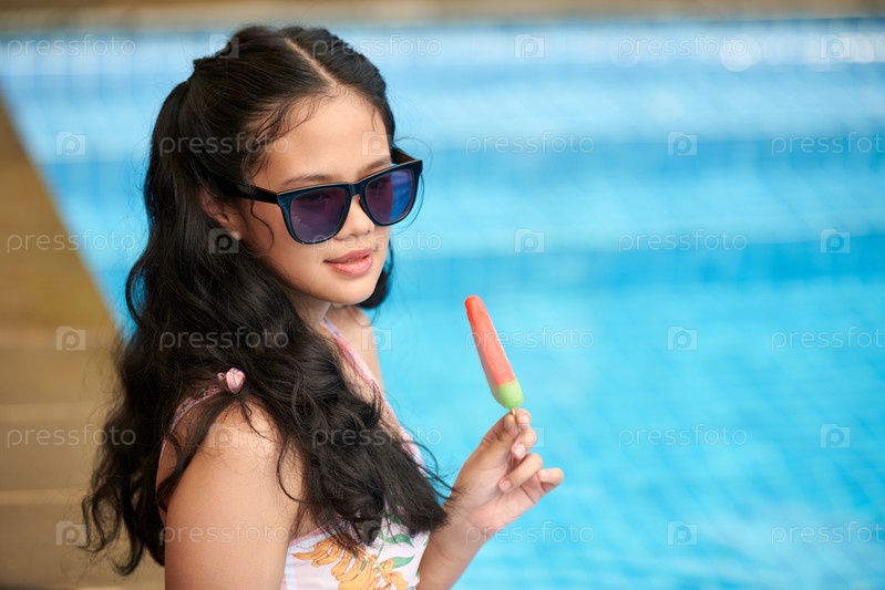 Девушка, съедающая арбузную мороженую