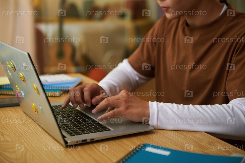 Подросток играет в игры на ноутбуке