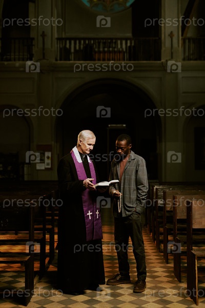 Пастор и прихожанин стоят на церковном корабле