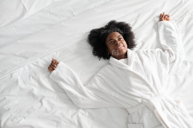 Молодая женщина, лежащая на свежей белой кровати