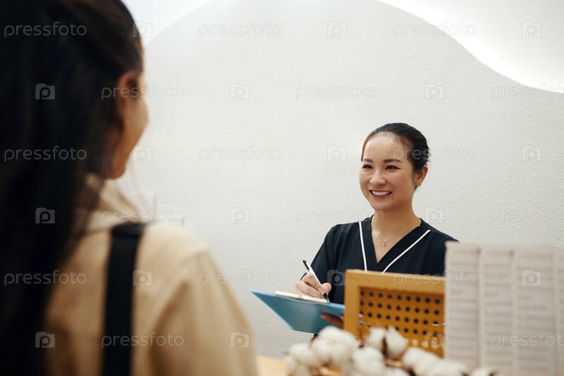 Собеседник разговаривает с администратором клиента салона
