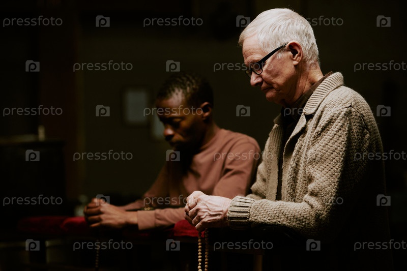 Различные мужчины молятся в церкви