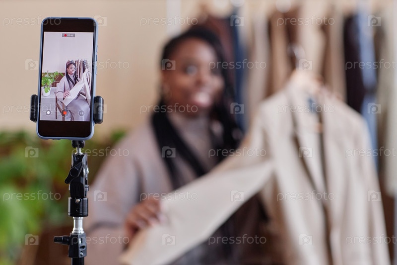 Стилист записывает видео с акцентом моды на экране смартфона