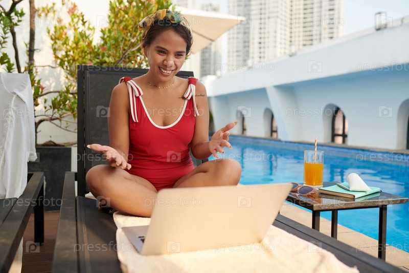 Женщина, загорающаяся на солнце Видео звонит коллеге по работе