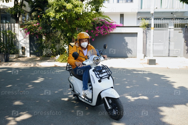Молодой человек, работающий курьером