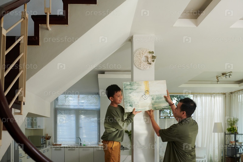 Помогая отцу повесить картину