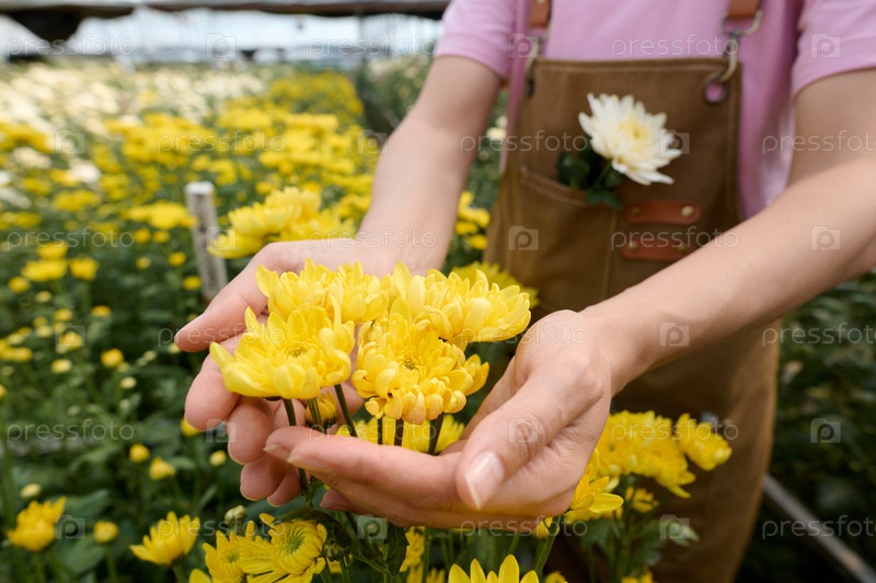 Садовник наслаждается цветами в расцвете