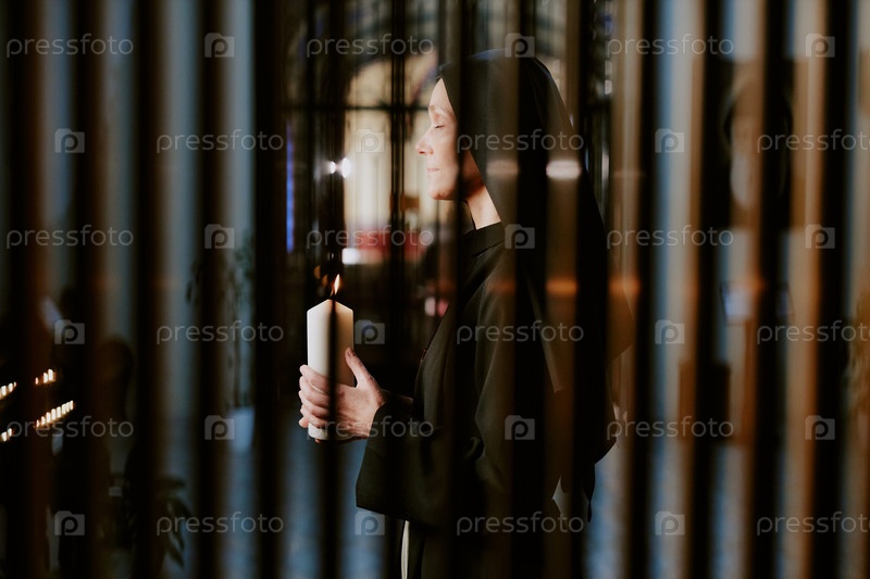 Молитва со свечой в руке монахиня