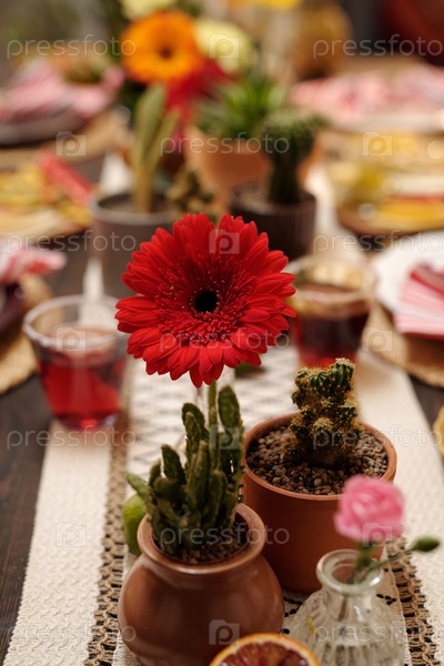 Красная гербера на праздничном столе