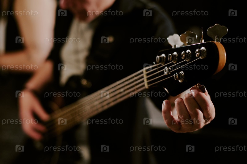 Непризнанный человек настраивает бас-гитару