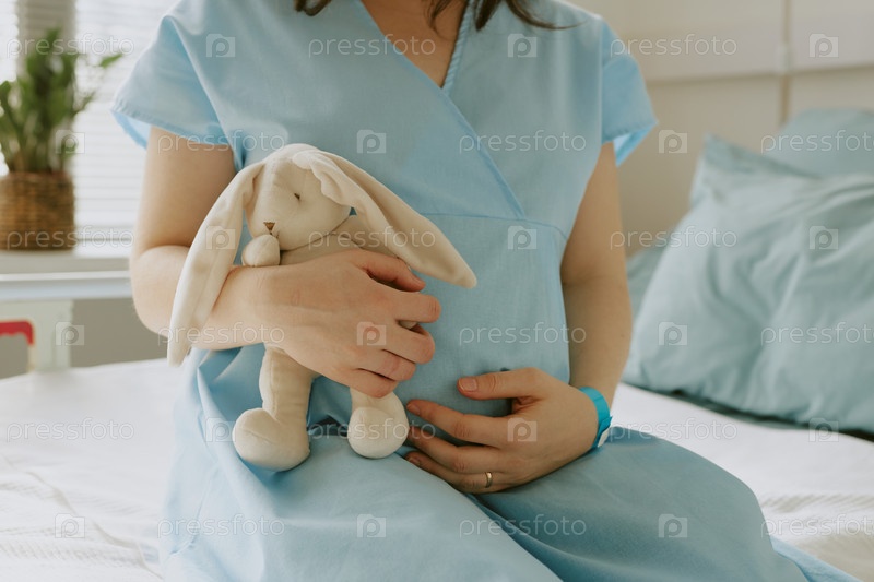 Беременная женщина сидит на кровати