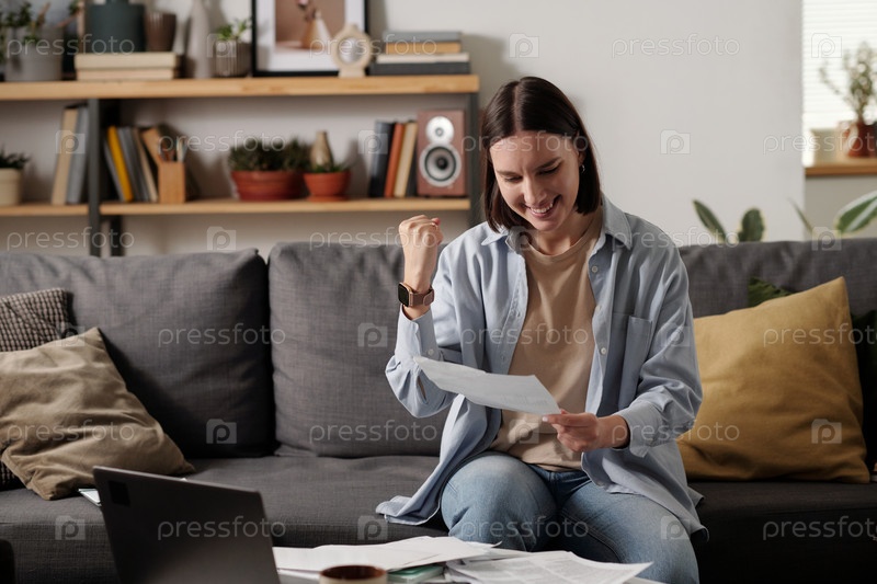 Женщина с бумагой, выражающая радость