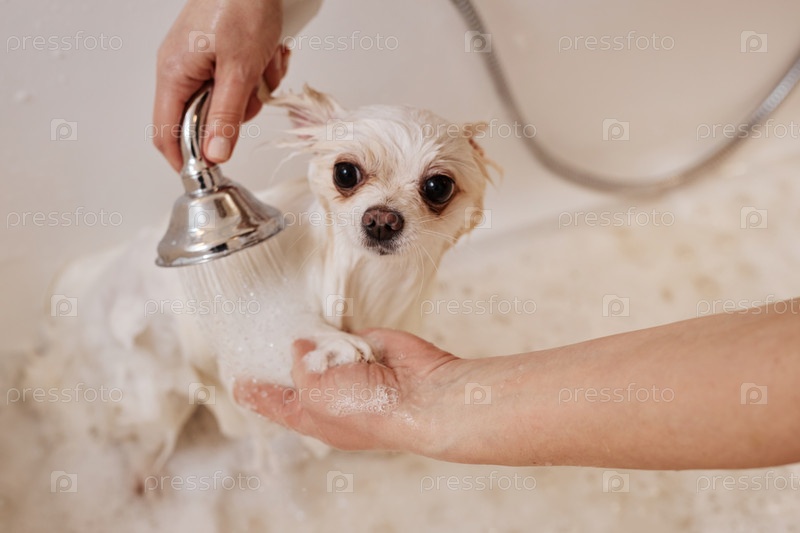 Милый Щенок в ванной Уход за домашними животными