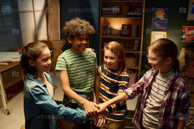 Счастливые дети делают кучу рук