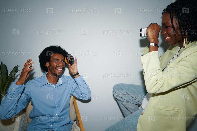 Черная женщина фотографирует коллегу по работе