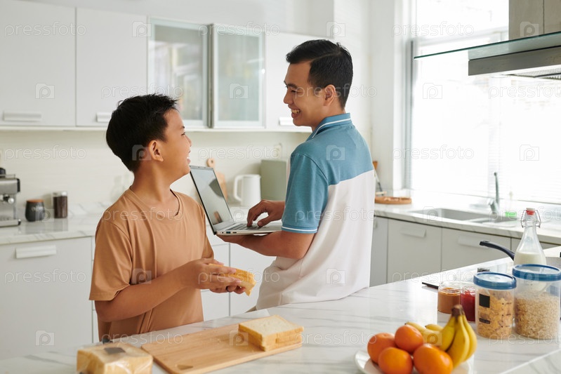 Приготовление завтрака для отца сына