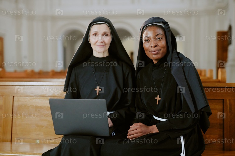 Две разнообразные монахини с ноутбуком