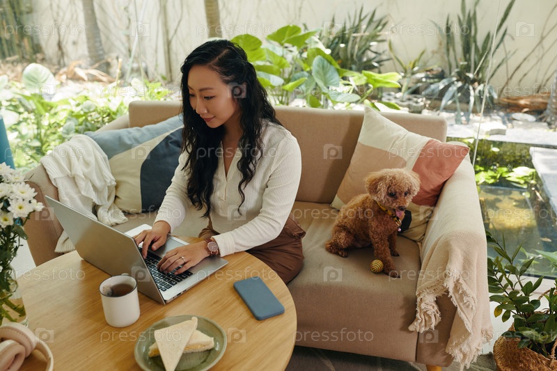 Женщина, работающая на ноутбуке дома