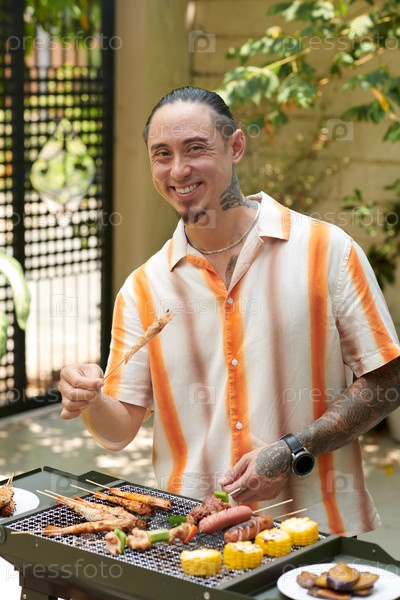 Enjoying Grilling Food Man Наслаждаясь гриль-продуктами