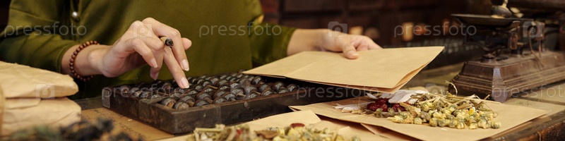 Фармацевт, рассчитывающий ингредиенты для продажи