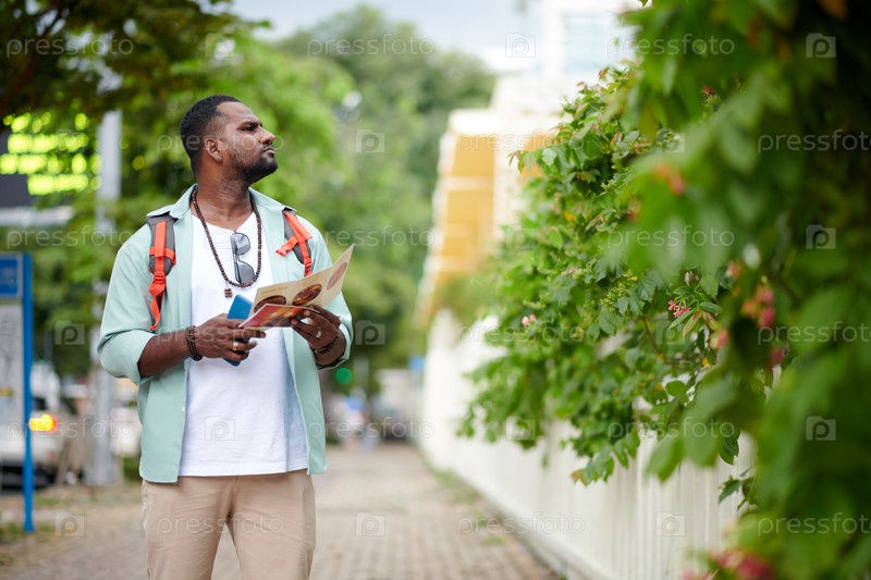 Молодой турист-мужчина совершает сольный тур