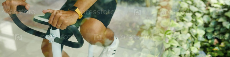 Человек ездит на велосипеде на упражнениях на велосипеде в помещении