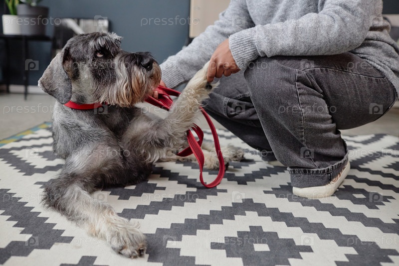Собака дает лапу человеку