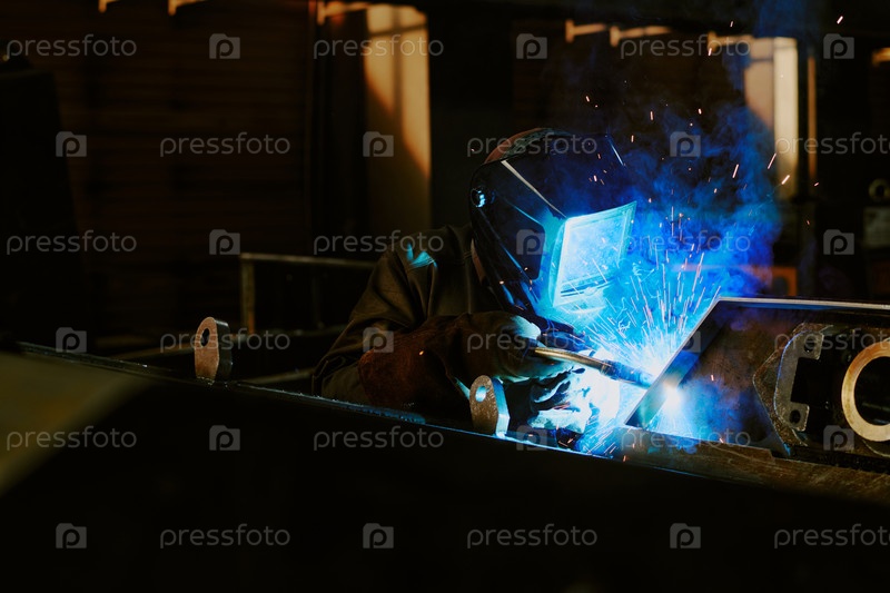Фабричный рабочий сварка металлических деталей