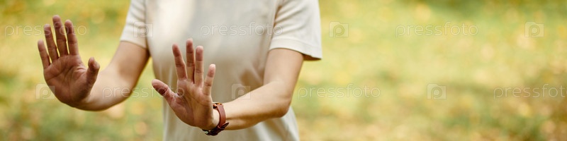 Делая тай-чи перемещение женщина
