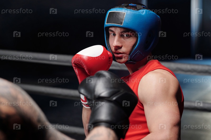 Парень в боксерских перчатках и лицевом щите