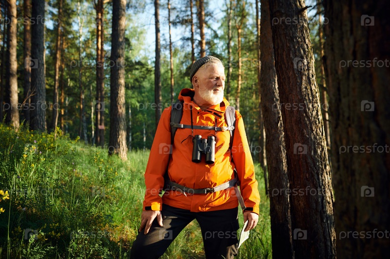 Старший мужчина, стоящий в лесу