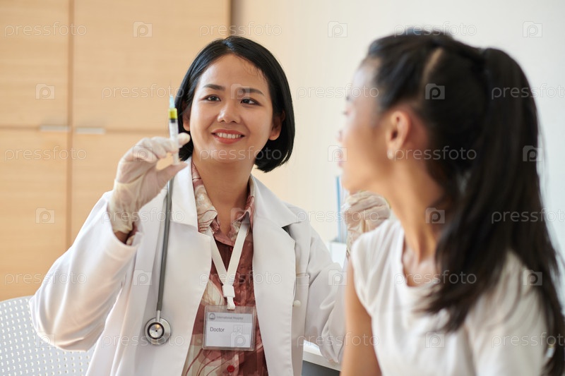 Педиатр, держащий шприц с вакциной
