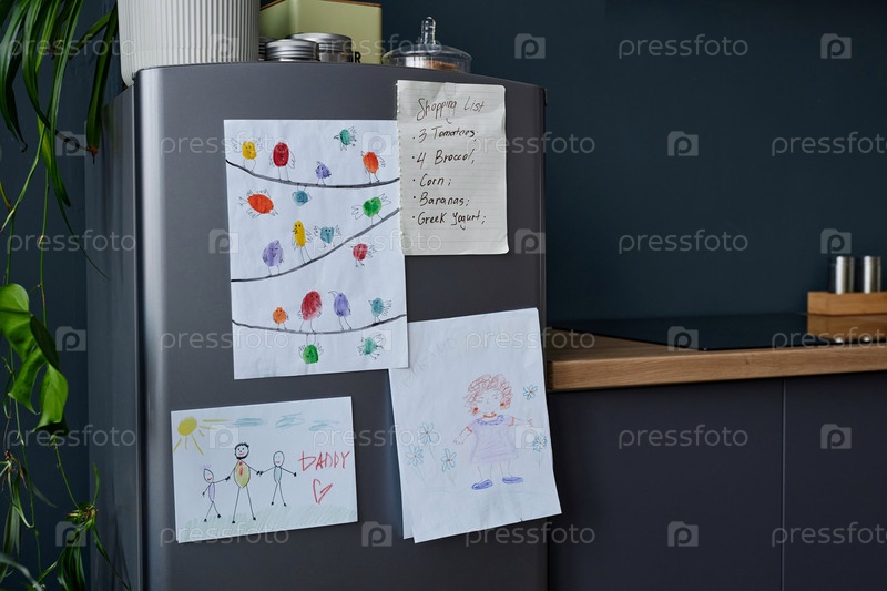 Детские рисунки на холодильнике