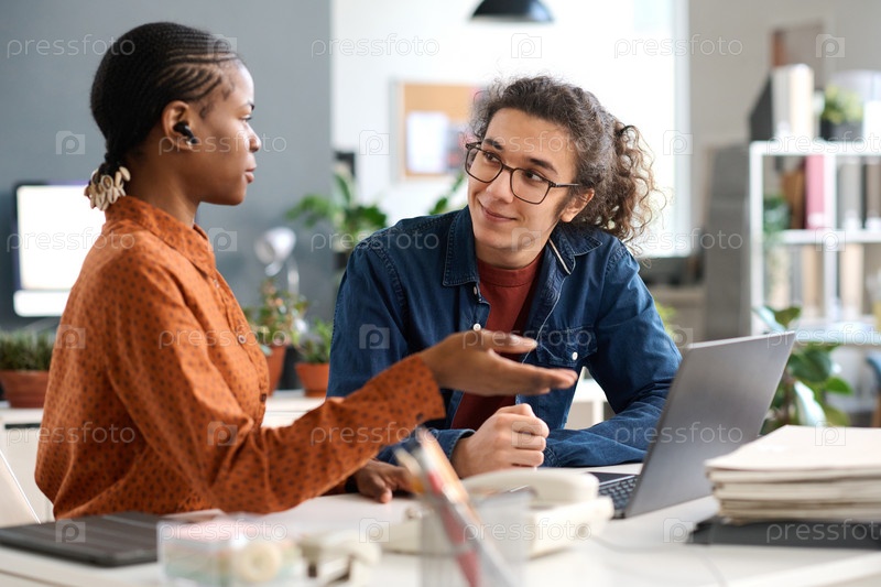 Коллеги обсуждают идеи на встрече за столом