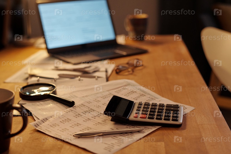 Калькулятор и ручка на финансовых счетах
