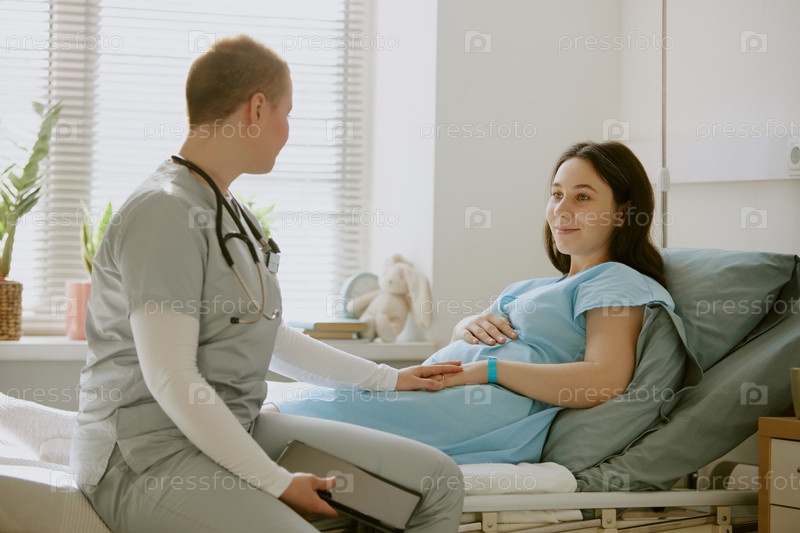 Медсестра утешает молодую беременную пациентку