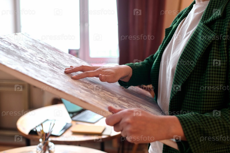 Близкий план женщины-художницы, держащей масляную картину