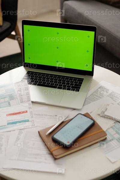 Ноутбук с хроматическим ключом стоит на столе