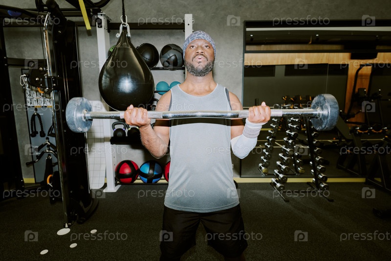 Афроамериканский мужчина, занимающийся тяжелой атлетикой