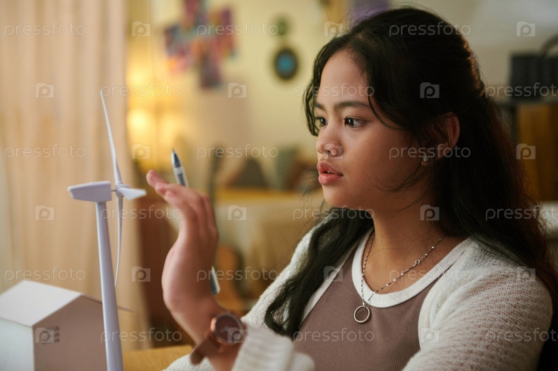 Ученица учится о ветровой энергетике