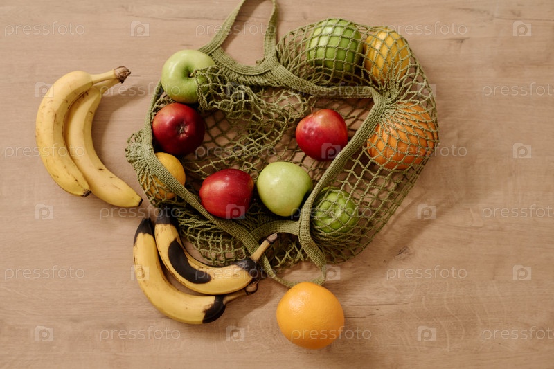 Ассортимент фруктов в сумке для покупок