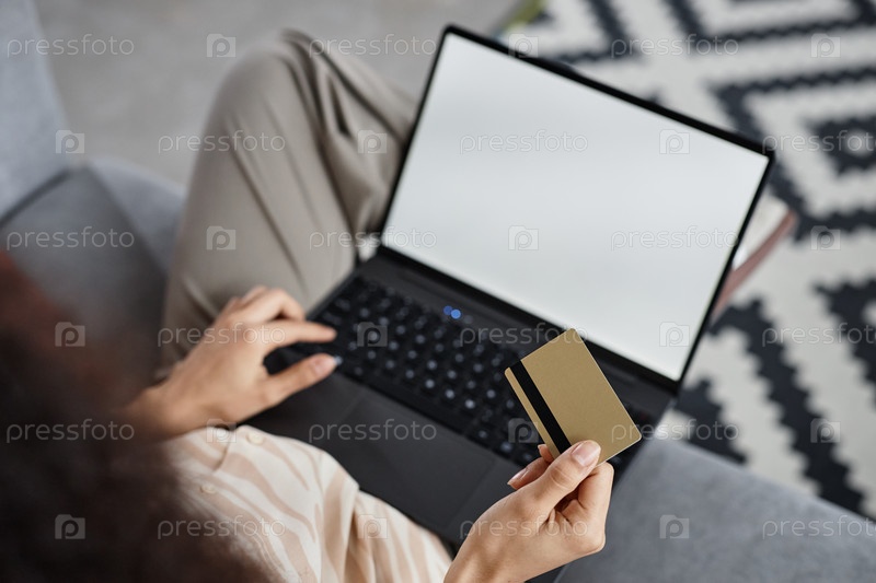 Непризнанная девушка просматривает интернет-магазин на ноутбуке