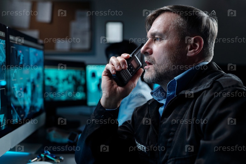 Мужской охранник с прослушкой через рот