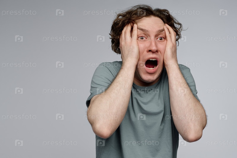 Испуганный молодой человек Студийный портрет