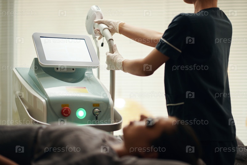 Косметолог забирает лазер с стенда